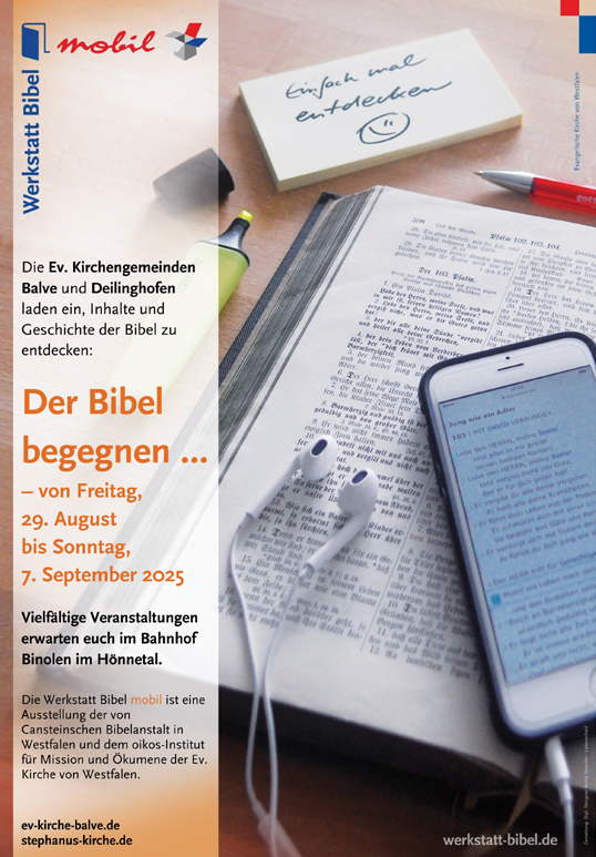 Die Ev. Kirchengemeinden Balve und Deilinghofen laden ein, die Bibel (neu) zu entdecken und holen für zehn Tage die „Werkstatt Bibel mobil“ in den Bahnhof Binolen.